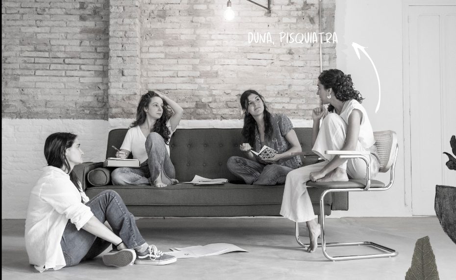Quatre bones amigues que treballem en l’àmbit de la salut mental i que ara ens hem decidit a donar el salt i oferir un servei en total sintonia amb els nostres valors. L’equip està compost per una psicòloga, una terapeuta ocupacional i dos psiquiatres formades en psicoteràpia.